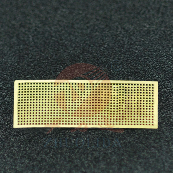 一、用途及特點:網(wǎng)孔板是用于耳機、手機、音響等。傳統(tǒng)一般都是采用開磨具沖壓成型,但是沖壓工藝比較粗糙,公差大,而且精度不高。對高精密的零部件用沖壓的工藝無法達到這樣的要求,卓力達生產(chǎn)的精度高,采用的是化學蝕刻的工藝制作,蝕刻工藝解決了工業(yè)生產(chǎn)中對高精密零部件的要求,這種先進工藝制做的網(wǎng)孔板 ,小孔徑可以達到0.1mm,并且孔壁垂直,沒有任何毛刺;平面度保持在0.02mm以下,小公差可做到+/-0.01mm,是目前國內(nèi)企業(yè)替代臺灣和日本生產(chǎn)技術的選擇。