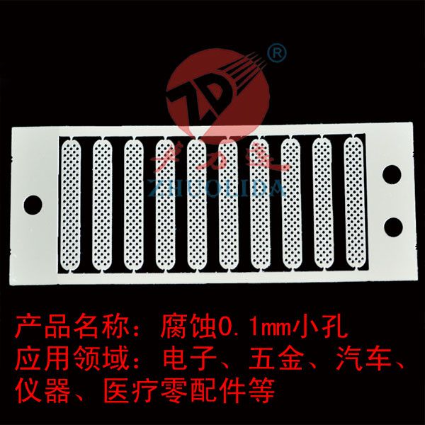 | 產(chǎn)品簡(jiǎn)介: | 腐蝕0.1mm小孔可用于電子、五金、汽車(chē)、航空、醫(yī)療、儀器零配件等 |